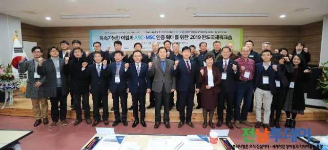 군은 「완도군 수산물 10%이상 ASC, MSC 인증 확대」를 위해 작년 8월 ASC 인증 확대 추진 선포식 및 지난 2월에는 완도 국제워크숍을 개최하였다.
