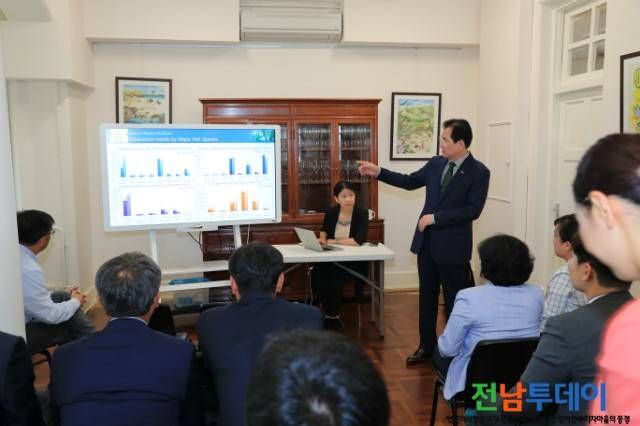 이날 발표자로 나선 완도군 신우철 군수는 한국의 수산업 현황, 완도군의 지속가능한 양식업 전환을 위한 지금까지의 추진 과정 및 노력과 전복에 이어 광어, 해조류 등의 ASC·MSC 인증 확대 추진 계획에 대해 소개했다.