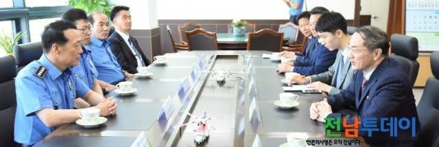 [전남투데이 김오례기자]駐(주)광주 중국 총영사 쑨쎈위(56세, 남) 영사관 등 3명이 지난 22일 오전 11시쯤에 자국민인 선장을 긴급 이송하여 치료를 받는데 도움을 준 완도해양경찰서를 방문했다.