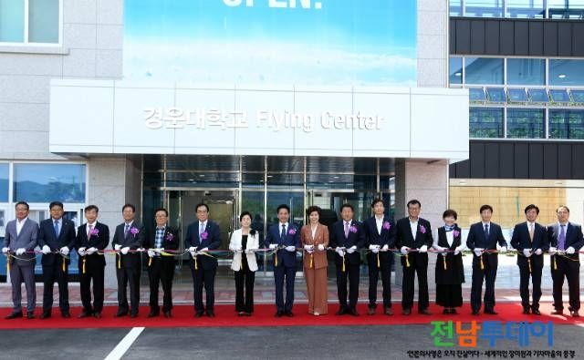 (전남투데이 김연자 기자) 영암읍 남풍리에 위치한 항공인력 양성의 보금자리 경운대학교 Flying Center(비행교육원)가 경운대학교 관계자 및 영암군 공직자와 지역주민들의 많은 축하와 격려 속에 5월 28일(화) 개소식을 가졌다. 경운대학교 Flying Center(비행교육원)는 강의동, 기숙사 2개동 3층으로 기숙사는 학생 및 교관 146명이 이용 할 수 있는 2인용 73개실로 구성되어 있다.