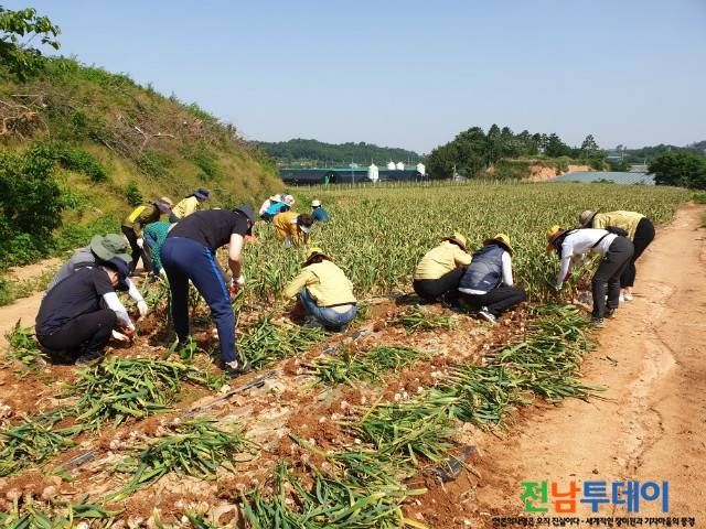(전남투데이 김연자 기자) 덕진면은 29일 용산리 우도마을 마늘재배농가를 방문하여 마늘수확 일손 돕기를 실시했다. 이번 일손돕기에는 면사무소와 덕진면 담당 실과소인 여성가족과, 의회사무과 직원 30여명이 참여했다.
