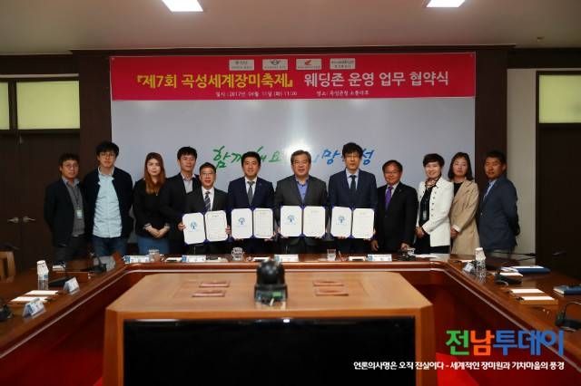 군은 지난 11일 군청 소통마루에서 제7회 곡성세계장미축제 기간동안 웨딩존 운영을 위해 협찬기업과 업무협약을 체결하고 프로모션을 함께하기로 밝혔다.