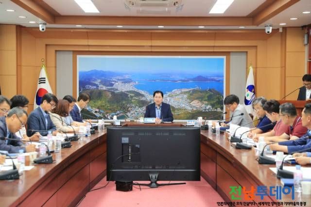 지난 3일 군청 상황실에서 신우철 완도군수가 직접 주재한 가운데 해양치유산업 성공 추진을 위한 전략과제 보고회를 개최했다.