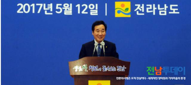 언제나 국민과 역사를 생각하는 총리, 특히 서민의 사랑을 받는 총리가 되도록 노력하겠습니다. 나라다운 나라, 자랑스러운 대한민국을 만드는 데 신명을 바쳐 일하겠습니다. 도민 여러분의 행복과 전남의 발전을 기원합니다. 감사합니다.