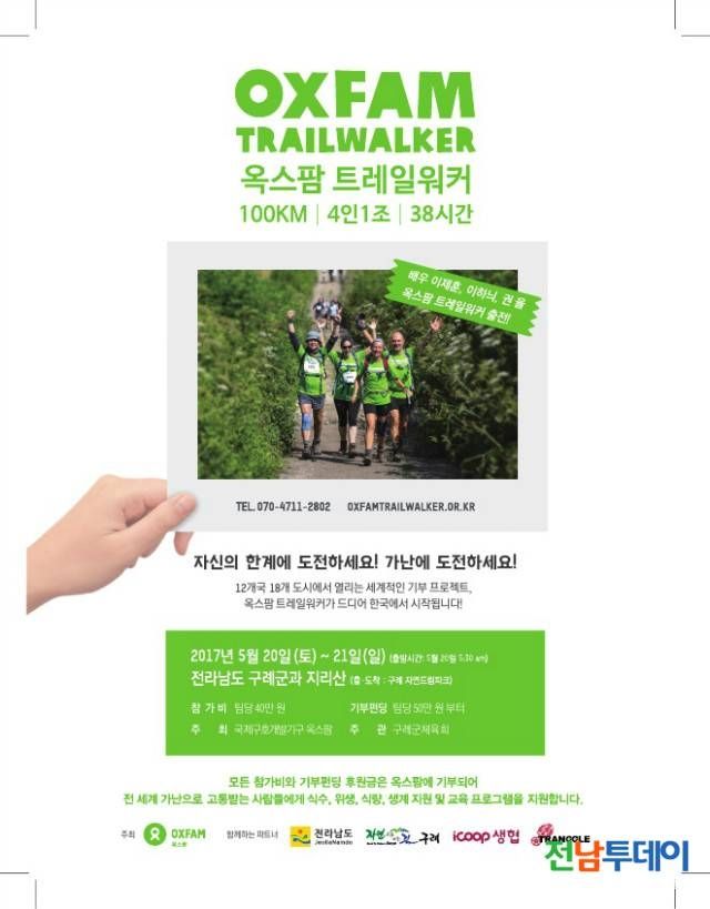 오는 20일부터 21일까지 구례군 일원에서 도전 형식의 기부 챌린지인 국제기부행사 「옥스팜 트레일워커」가 열린다.