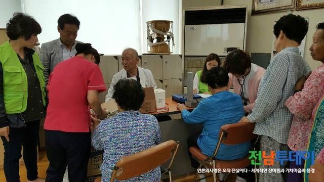 곡성군(군수 유근기)은 지난 8일 입면 복지회관에서 오지마을 취약계층 주민들을 직접 찾아가는 희망복지 기동서비스 운영단에 ‘큰길요양병원 의료봉사단’이 합류해 양방 의료서비스를 제공하며 주민들의 건강관리를 위해 구슬땀을 흘렸다.