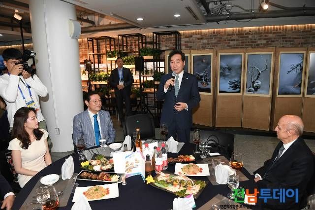 이날 이낙연 국무총리를 비롯한 이용섭 조직위원장과 초청 인사, 국제수영연맹(FINA) 관계자 등이 참석하여 만찬을 함께 하였으며, 비파 와인의 맛을 음미했다.