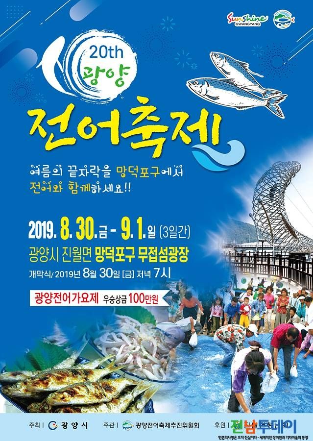 【전남투데이 구정준 기자】광양시 진월면은 오는 8월 30일(금)~9월 1일(일) 3일간 ‘여름의 끝자락을 망덕포구에서 전어와 함께 하세요’라는 주제로 제20회 광양전어축제가 개최된다고 밝혔다.