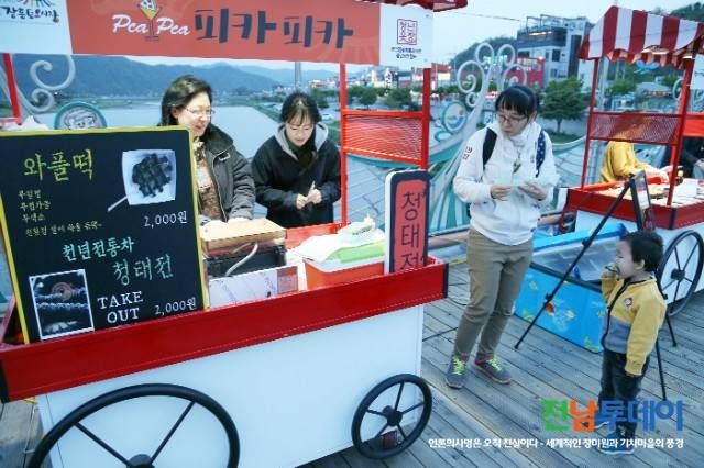 독특한 것은 지금까지 시장이나 상가를 중심으로 운영되던 일반 야시장과 달리, 탐진강 다리 위에 공원형 야시장을 꾸민다는 사실이다.