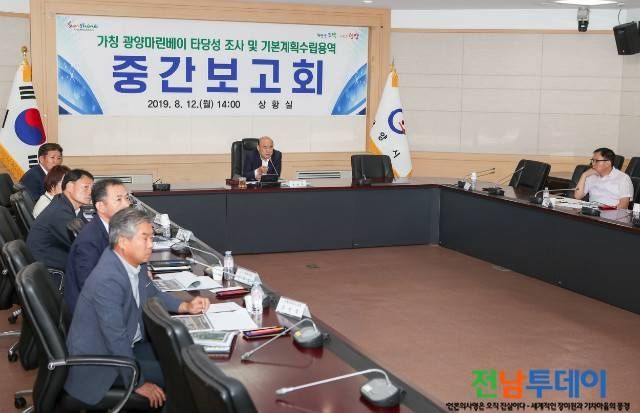 【전남투데이 구정준 기자】광양시는 지난 12일(월) 오후 2시 시청 상황실에서 마린베이 관련 부서장, 유관기관 관계자 등 20여 명이 참석한 가운데 광양마린베이 기본계획수립용역 중간보고회를 개최했다고 밝혔다.