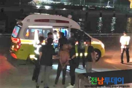 이에 완도해경은 경비정을 급파, 신고접수 1시간 3분 만에 현장에 도착하여 환자와 보호자, 가해자, 호송경찰관 등 5명을 탑승시킨 후 완도신전용부두에 도착, 밤 9시 3분경 먼저 환자 등 3명을 119구급대, 가해자는 완도경찰서 지능범죄수사팀에 인계하였다.
