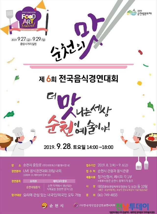 【전남투데이 구정준 기자】순천시(시장 허석)는 오는 9월 6일(금)까지 ‘순천의 맛! 전국음식경연대회’ 참가자를 공개모집 한다고 밝혔다.