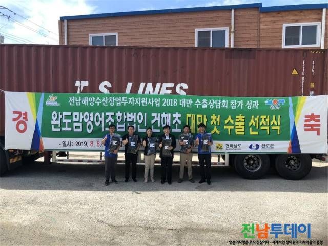 [전남투데이 김오례기자]전남해양수산창업투자지원사업 마케팅 지원의 일환으로 대만 가오슝 수출상담회(2018년 11월 21~22일)에 참가하였던 수혜 기업 완도맘영어조합법인(대표 이수화)이 (재)전남생물산업진흥원 해양바이오연구센터(센터장 임영태)와 가오슝 K-FISH가 연계 협력을 통해 지난 8일, 완도산 해조류 제품을 대만에 수출 선적하는 쾌거를 이뤘다.