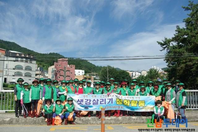 【전남투데이 구정준 기자】순천시새마을부녀회(회장 백영자)에서는 생명·평화·공경운동의 일환으로 8월 14일 9시부터 순천시 향림사 앞 석현천에서 ‘샛강살리기 정화활동’을 펼쳤다.