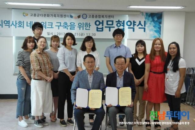 고흥군다문화가족지원센터(센터장 황상철)는 21일 고흥종합복지센터(센터장 신상신)과 지역사회 네트워크 구축을 위한 업무협약을 체결하였다.