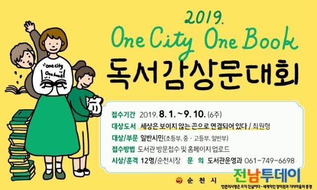 【전남투데이 구정준 기자】순천시가 2004년부터 시민 공동체 독서운동으로 추진하고 있는 ‘ One City One Book’활성화를 위한 ‘2019 독서감상문 대회’참가작품을 지난 8월 1일부터 오는 9월 10일까지 접수하고 있다.