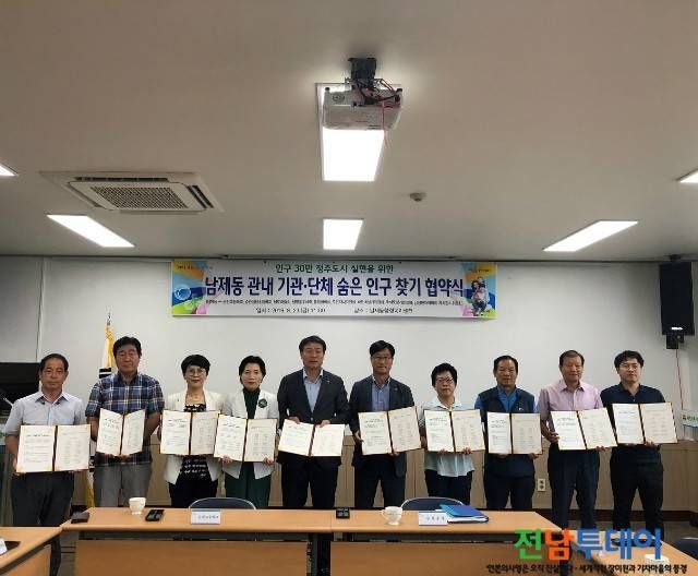 【전남투데이 구정준 기자】순천시 남제동에서는 지난 23일(금) 관내 9개 기관‧단체장과 남제동 숨은 인구 찾기를 위해 ‘남제동 관내 기관‧단체 숨은 인구 찾기 협약식’을 가졌다고 밝혔다.