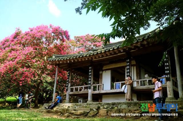 담양 ‘명옥헌 원림’에 만발한 붉은 백일홍이 매혹적인 분위기를 자아내며 관광객들과 출사객들의 발길을 사로잡고 있다. 흐드러진 꽃들이 만들어내는 아름다운 장관은 늦여름까지 이어진다.