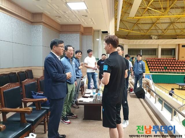 김재중 광양시체육회 상임부회장과 이삼식 체육과장은 탁구 전지훈련장을 방문하여 선수단을 격려했다.