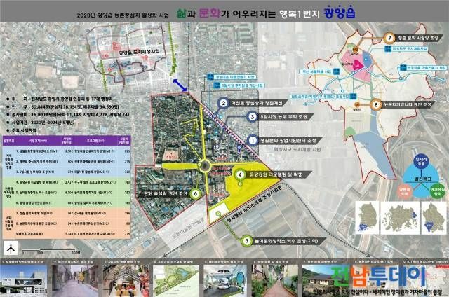 ‘광양읍 농촌중심지 활성화사업’은 유동인구가 집중되는 버스종합터미널을 중심으로 5일 시장과 전남도립미술관, 유당공원을 중심거점으로 추진되며, 2020년부터 5년간 160억 원(국비 111억 원)이 투입된다.