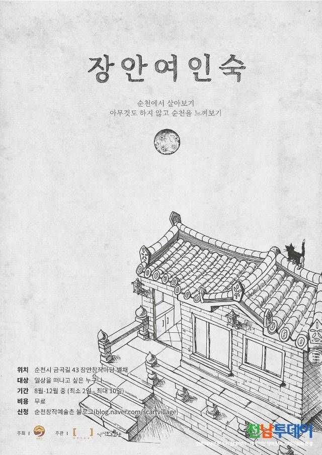 순천시 창작예술촌에서는 오는 12월까지 순천을 찾는 여행자들이 무료로 머물 수 있는 ‘장안여인숙’을 운영한다.