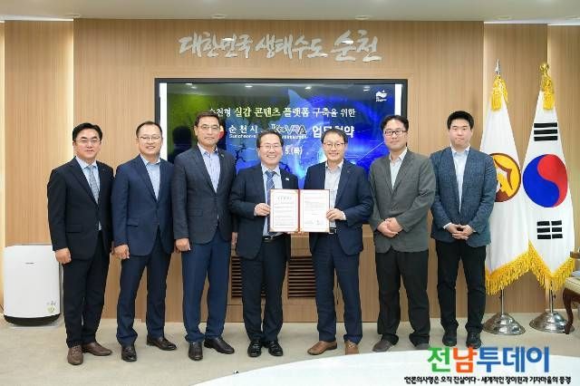 【전남투데이 구정준 기자】순천시(순천시장 허석)는 5일 한국가상증강현실산업협회(회장 구현모와 VR‧AR기반 순천형 실감 콘텐츠 플랫폼 육성 업무협약(MOU)을 체결했다.