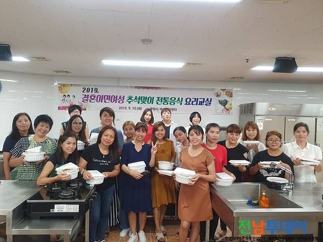 【전남투데이 구정준 기자】광양시는 지난 10일(화) 광양시 여성문화센터 조리실에서 광양시 결혼이민여성 20명을 대상으로 ‘추석맞이 결혼이민여성 전통음식 요리 교실’을 열었다고 밝혔다.