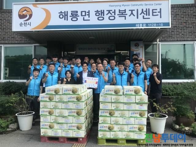 【전남투데이 구정준 기자】순천시 해룡면 소재 ㈜현대제철이 지역 어려운 가정을 위해 명절맞이 후원물품을 해룡면 행정복지센터에 기부했다.