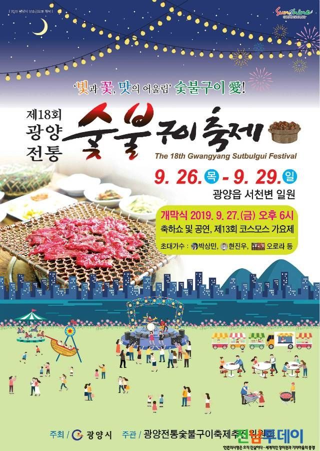 【전남투데이 구정준 기자】‘제18회 광양전통숯불구이축제’가 오는 9월 26일(목)~29일(일) 4일간 광양읍 서천변 일원에서 개최된다.