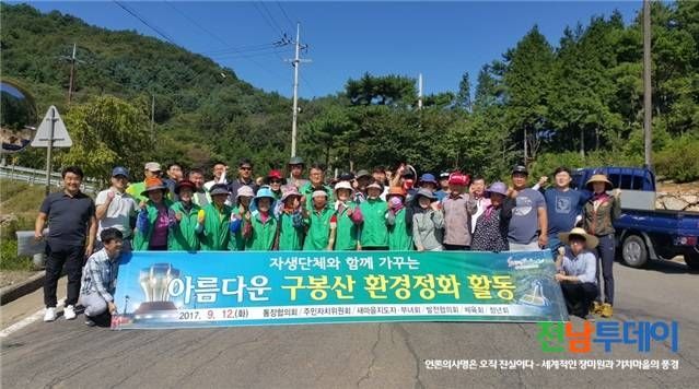 참석자들은 구봉산 진입로와 전망대 주변 생활쓰레기와 숲속에 투기된 폐비닐, 농약병, 오물, 방치된 폐기물 등을 수거하고, 구봉산 일대 도로변 칡 넝쿨을 제거하는 등 구슬땀을 흘렸다.
