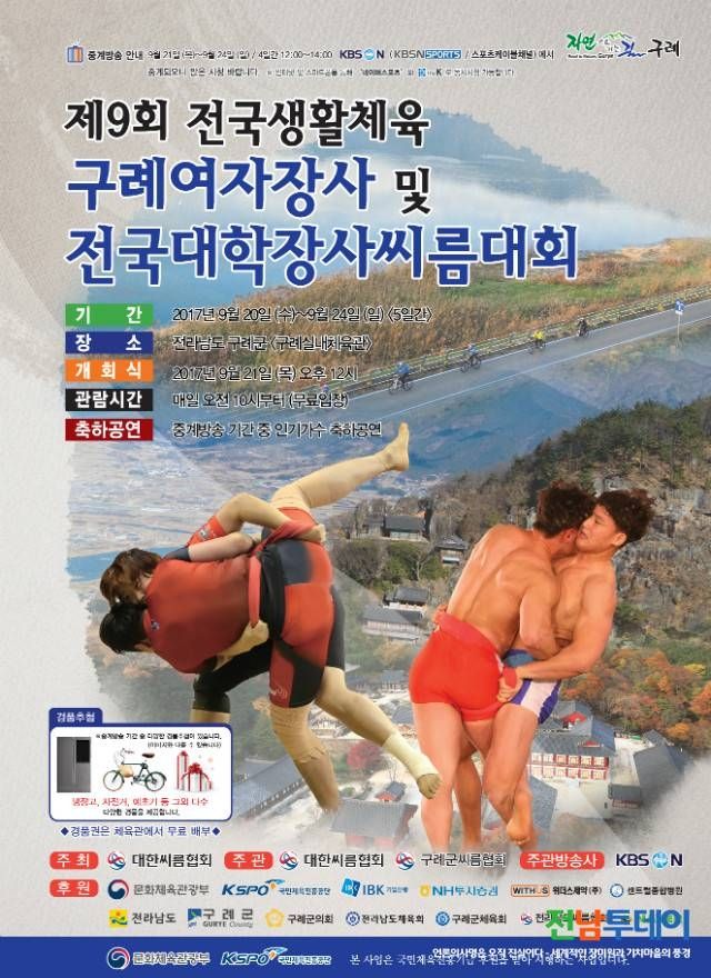 오는 9월 20일부터 24일까지 여자씨름의 발상지인 구례에서 「제9회 전국생활체육 구례여자장사 및 전국대학장사 씨름대회」가 성황리에 개최된다.