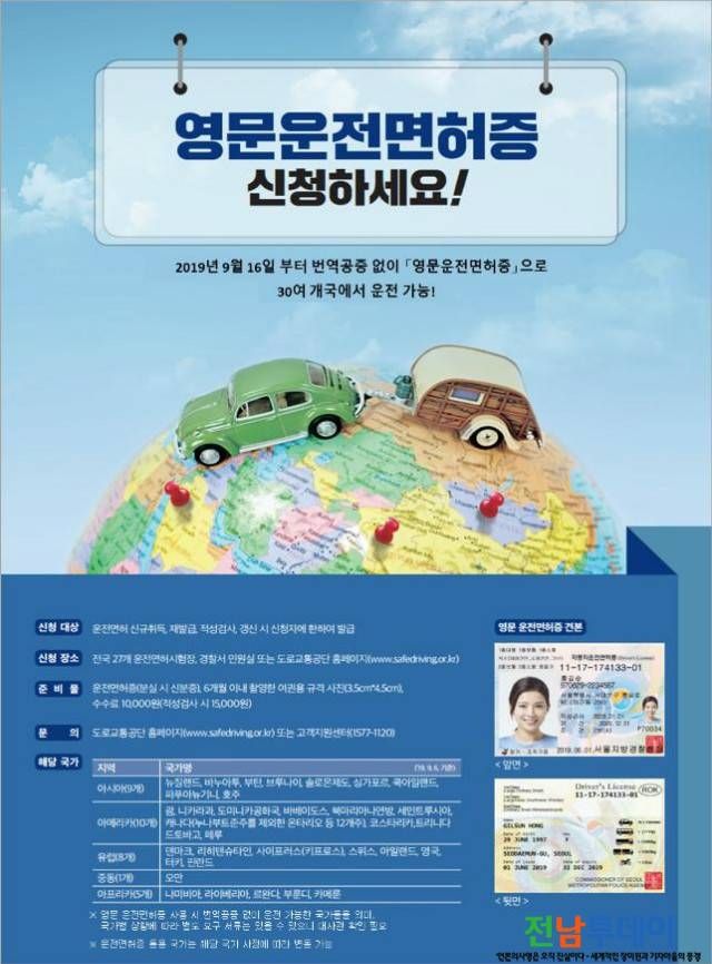 【전남투데이 구정준 기자】도로교통공단 광양운전면허시험장(장장 이광희)은 지난 16일부터 영국, 캐나다, 호주 등 33개국에서 통용되는 ‘영문 운전면허증’발급을 시행하고 있다.