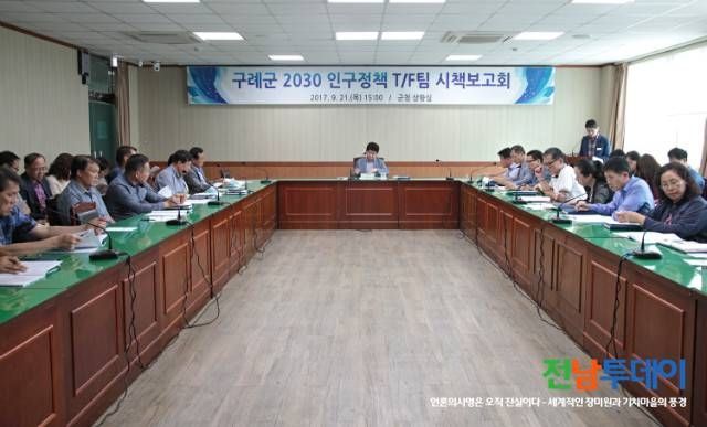 이번 보고회는 구례군 2030 인구정책 T/F팀에서 발굴한 신규 시책을 보고하고 문제점과 개선방안을 논의하기 위해 마련했다. 군은 지난 5일 T/F팀을 조직하여 인구․ 일자리․청년․출산 등 4개 분야에 걸친 시책을 망라한 인구정책 마스터플랜인 「구례군 2030 인구정책」 수립에 착수한 바 있다.