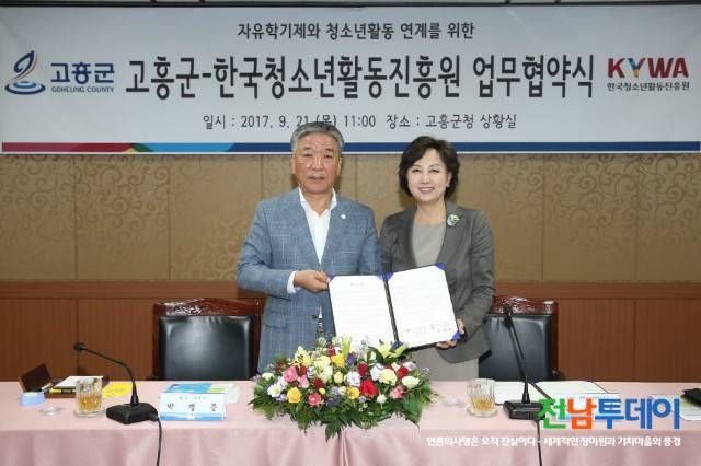 여성가족부 산하 한국청소년활동진흥원(KYWA, 이사장 신은경)은 9월 21일 전남 고흥군청(군수 박병종), 전남고흥교육지원청(교육장 정병원)과 청소년자기도전포상제-자유학기제 연계 운영 지원 및 ‘고마워Yo(요)’ 청소년행복캠페인 협력을 위한 업무협약을 체결했다.