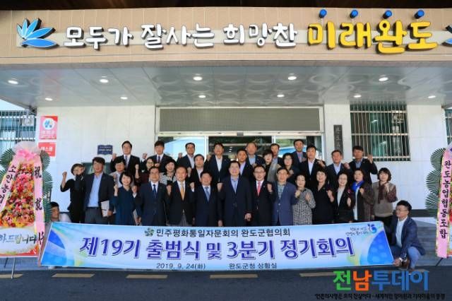[전남투데이 김오례기자]민주평화통일자문회의완도군협의회(회장 정남선)는 지난 24일 완도군청 상황실에서 신우철 완도군수, 완도군의회 조인호 의장 및 자문위원 등 40여 명이 참석한 가운데 ‘제19기 출범식 및 3분기 정기회의’를 개최했다.