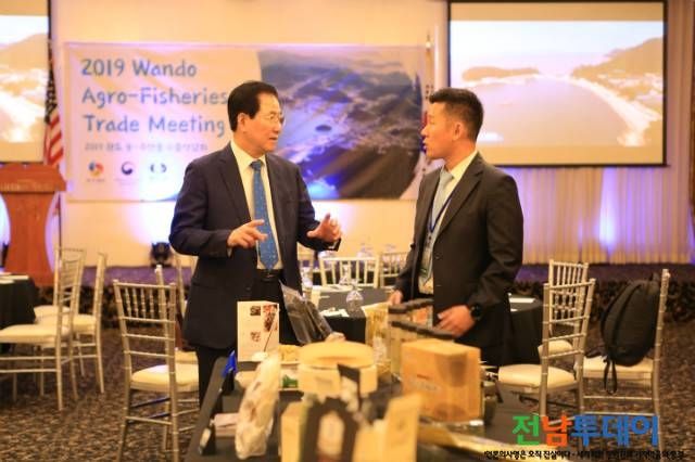 [전남투데이 김오례기자]완도군(군수 신우철)은 미국 진출의 선도적 수출 판로 확대를 위해 9월 26일 미국 LA 가든 스위트 호텔에서 미국 유통 관계자, 수산물 전문바이어를 초청해 수출상담회를 개최했다.