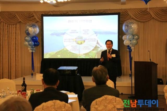 신우철 완도군수는 인사말을 통해 “완도군은 천혜의 아름다운 자연경관과 해양치유자원을 활용해 국내 최초로 해양치유산업을 추진하여 건강증진과 복지향상은 물론 군민의 미래 100년 먹거리 해결에 나섰다”며 “타국에서 은퇴를 고민하는 한인들에게는 완도라서 가능한 해양치유산업이 크나큰 매력으로 다가가는 의미있는 투자 기회”라고 역설했다.