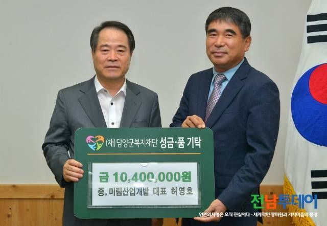 담양군복지재단은 28일 미림산업개발(주) 허영호 대표가 다가오는 추석을 앞두고 소외되기 쉬운 어려운 이웃을 위해 써달라며 10,400천원을 기부해 왔다고 밝혔다.