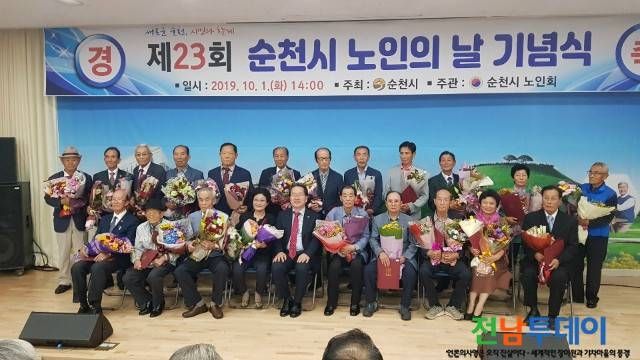 【전남투데이 구정준 기자】순천시는(시장 허석) 지난 1일(화) 노인회관에서 노인단체 대표, 노인복지유공자등이 참석한 가운데 ‘제23회 노인의 날’기념행사를 갖고 모범노인과 노인복지 기여자, 모범노인단체 등 34명을 표창했다.
