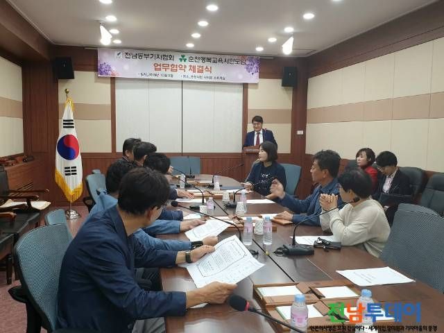 순천교육청에서 함께한 전희교육지원과장은 "요즘은 혼자하는게 아니라 협력하며살아가는 시대이다며, 이번 양단체의 업무협약도 그런점에서 큰 의미를 부여하고 싶다"고 말했다.