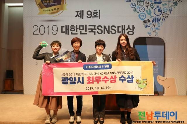 【전남투데이 구정준 기자】광양시는 10월 16일(수) 서울 한국프레스센터에서 열린 ‘2019 대한민국 SNS 대상’ 시상식에서 기초지자체 市 부문 최우수상을 수상하는 영예를 안았다고 밝혔다.