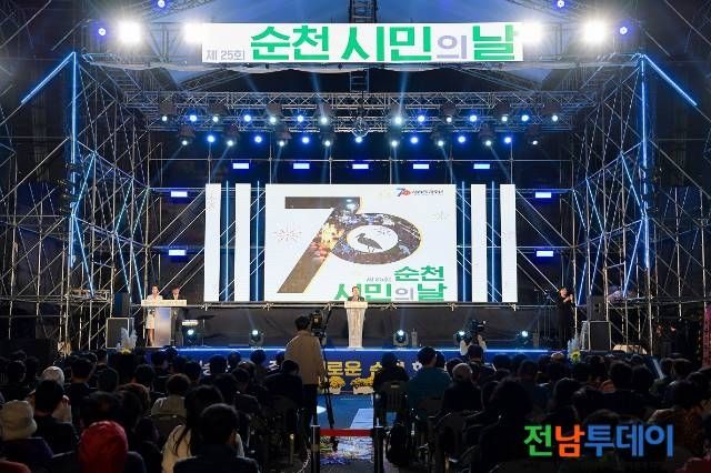 【전남투데이 구정준 기자】제25회 순천시민의 날 행사가 지난 15일(화) 시승격 70주년을 맞는 의미를 더하며, 순천시청 일대에서 1만여명의 시민들이 참여한 가운데 성황을 이뤘다.