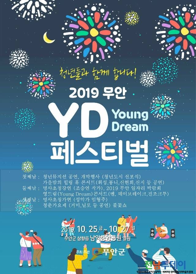 무안 영드림 페스티벌2019 무안 영드림(Young Dream) 페스티벌이 오는 10월 25일부터 27일까지 무안군 삼향읍 남악신도시 중앙공원 일원에서 개최된다.