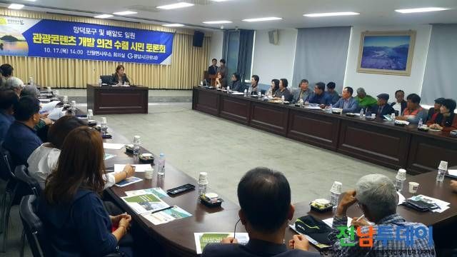 【전남투데이 구정준 기자】광양시가 지난 10월 17일(목) 오후 2시, 진월면사무소 회의실에서 진월면과 태인동 주민을 비롯하여 관련 단체 70여 명이 참석한 가운데 망덕포구 및 배알도 관광콘텐츠 구축에 시민들의 의견을 듣는 토론회를 개최했다고 밝혔다.