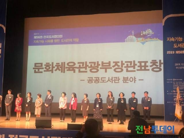 【전남투데이 구정준 기자】순천시는 지난 16일(수) 부산 벡스코에서 개최한 ‘제56회 전국도서관대회’에서 도서관 운영 우수지자체로 선정돼 도서관정보정책위원장 특별상을 수상하고, 순천시립조례호수도서관은 우수 도서관으로 선정돼 문화체육관광부 장관상을 수상했다.