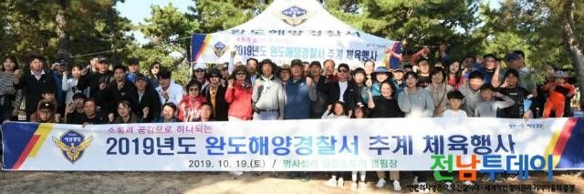 [전남투데이 김오례기자]완도해양경찰서(서장 김충관)는 지난 19일 명사십리 해수욕장에서 경찰관ㆍ가족ㆍ의경 240명이 참여한 가운데 소통과 만남, 건강 증진을 위한 추계 체육행사를 개최했다고 밝혔다.