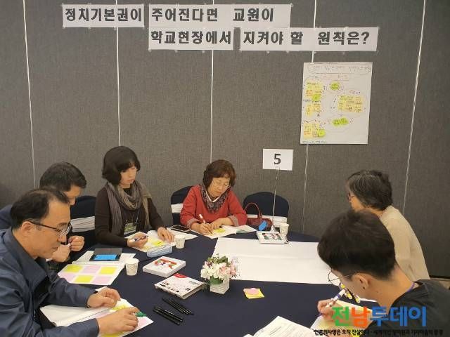 교사정치기본권찾기연대(공동대표 강신만, 곽노현)와 교원단체들이 공동으로 개최한 이날 행사에서 참가자들은 12개의 원탁에 둘러앉아 자발적으로 참가한 12명의 퍼실리테이터(토론진행자)와 함께 교원정치기본권 보장과 민주시민교육 원칙 합의에 대해 열띤 토론을 벌였다.