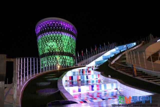 계단에는 형형색색을 연출하는 경관 조명시설을 설치하여 야간에도 볼거리를 제공하고 있다.