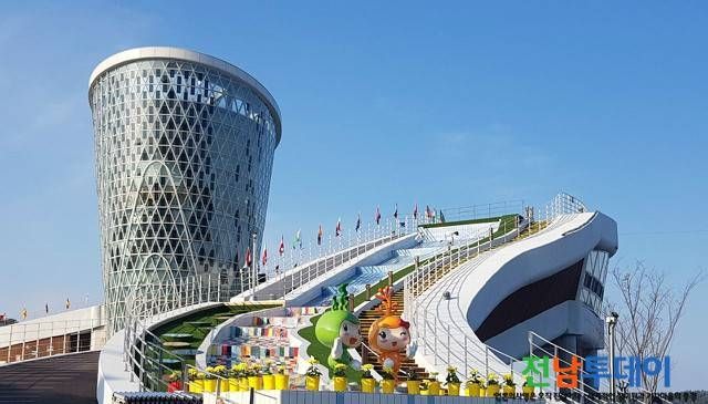 케스케이드 안전 난간에는 2021완도해조류박람회가 국제 행사로 개최함을 알리기 위해 세계 60개국의 국기를 게양했다.