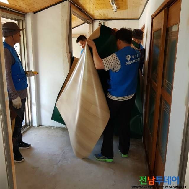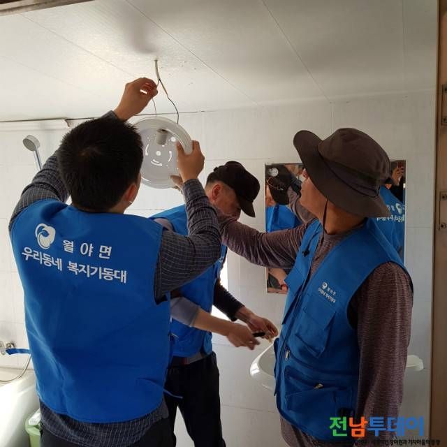 이날 복지기동대원 6명은 월야면 지역사회보장협의체가 발굴한 복지사각지대 가구를 방문해 도배와 콘센트․전등․장판 교체 등 소규모 주거 개선사업을 실시했다.